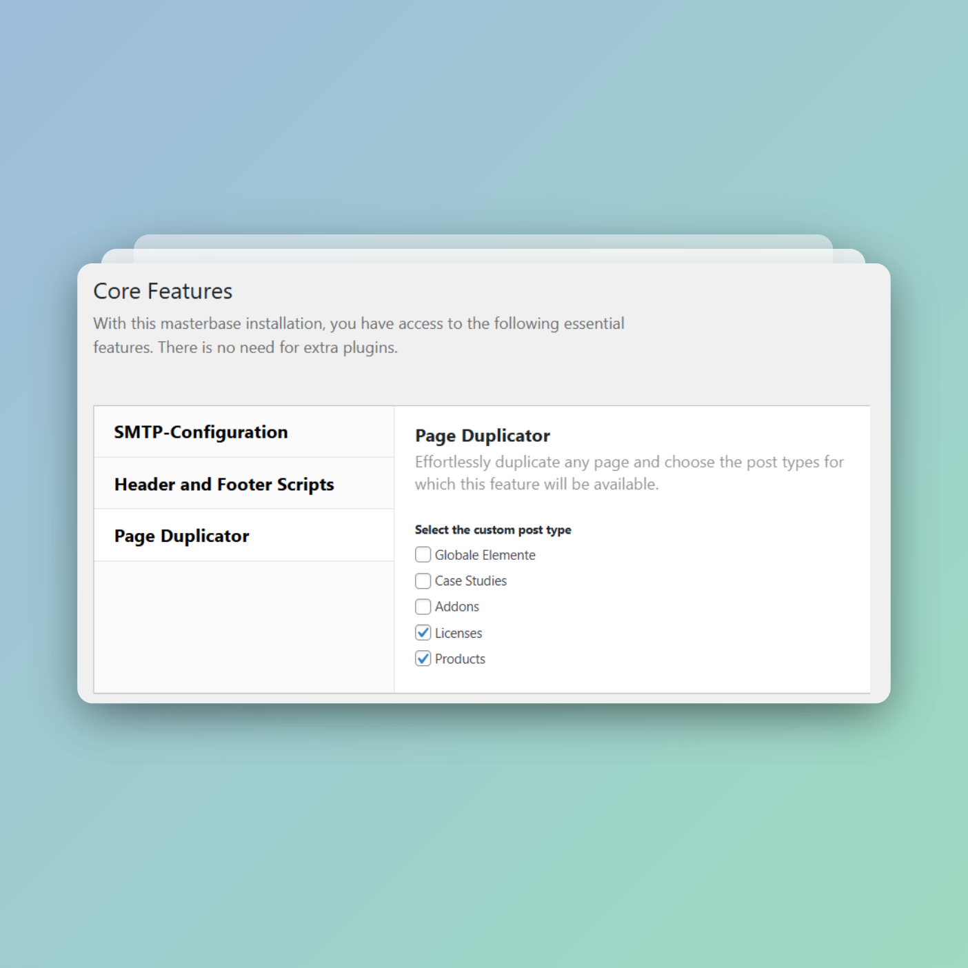 WP Masterbase works underneath as a stable foundation. It standardizes the things that should always be solid, while leaving full freedom for how you design, structure, and extend each project on top.