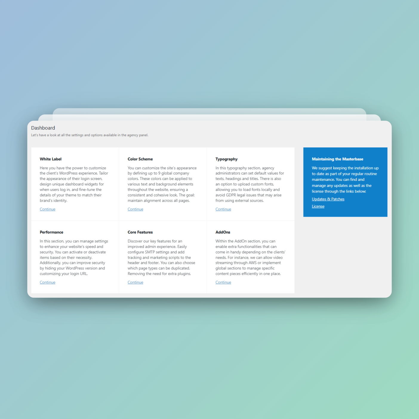 You stay in control of your projects, your clients, and your technical decisions. WP Masterbase simply gives you a stronger starting point.